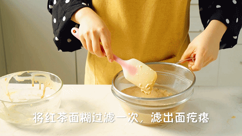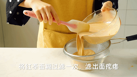 6、将红茶面糊过滤一次,滤出面疙瘩