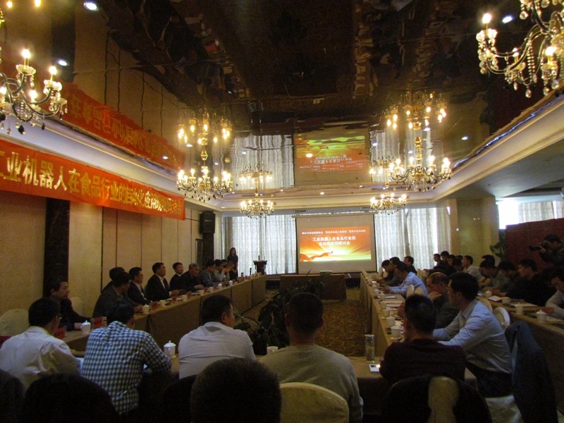 为普及工业机器人在食品行业的自动化应用,更好的了解食品企业对机器人自动化应用的需求,临沂市食品焙烤糖制品工业协会联合青岛食品协会、青岛宝佳自动化设备有限公司于2016年4月18日在临沂沂水龙冈大酒店隆重召开《工业机器人在食品行业的自动化应用现场研讨会》,临沂市贸促会副会长陈景修、临沂市食品协会会长巩大勇、青岛市食品协会会长都本强、青岛宝佳自动化设备有限公司董事长高明作、临沂食品协会饼干专业委员会会长郭京柏、山东青援食品有限公司、山东环球制罐有限公司、山东鼎邦健康食品有限公司等50余家企业参加研讨会。