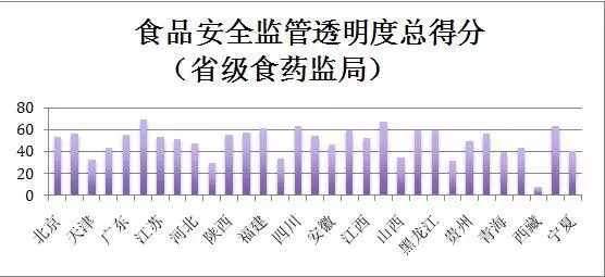 最不透明的省级食药监管局则是内蒙古、浙江和西藏,最低得分7.5分,与最高分相差9.3倍。绝大部分省局在50分以下。这再次印证了我们之前所说的我国食品安全监管透明度现状不容乐观。