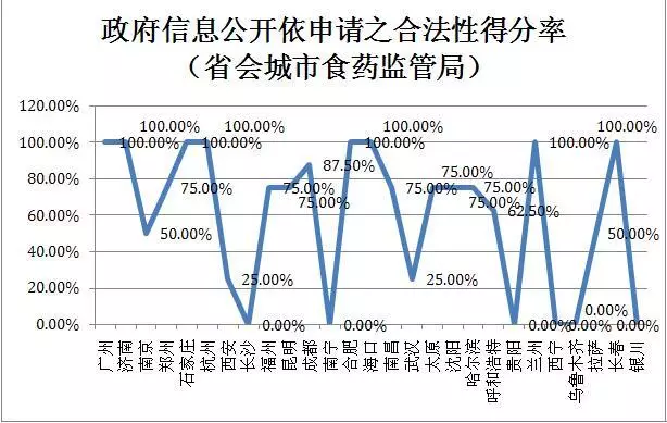 省会市食药局回复信息公开申请的合法性得分率如下图: