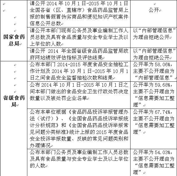 总结起来,我们向各级各地食药监局申请公开的各项信息最终回复情况如下: