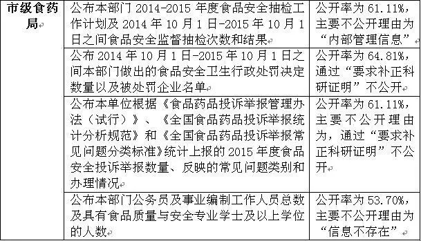 4.透明度组织制度配套信息公开有两处“洼地”,食品安全监管静态信息主动公开存在多个“盲点”;