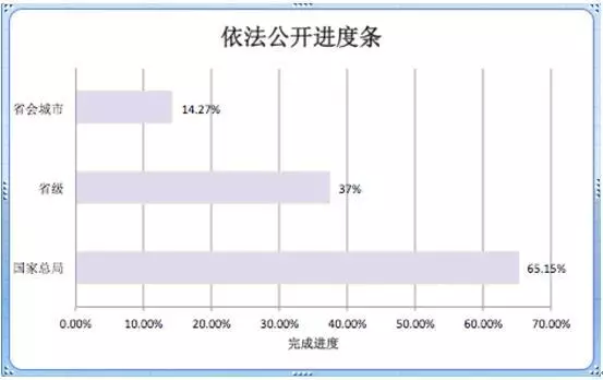 (8)食品虚假宣传/违法广告的查处信息。 那么,国家食药总局和省市食药局是否依法公开了这些信息呢?首先来看国家食药总局。上述九项指标总分为33分,国家食药总局得21.5分,得分率为65.15%,完成新《食品安全法》信息公开法定要求近三分之二。反观省级和市级食药局,在上述八项信息上得分率则分别只有37.40%和14.27%,依法公开任重道远。