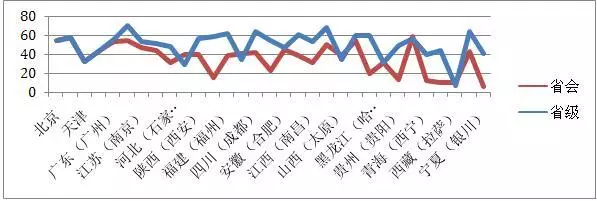接下来,我们将27个省会城市食药局与其所在省的食药局的透明度做对比: