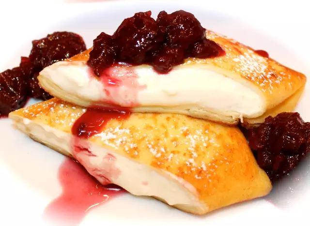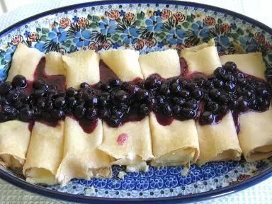 是用甜的或美味的奶酪作为馅料卷成的东欧Bilmi或blintz的波兰式煎饼。