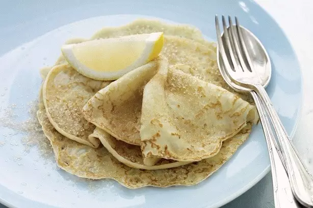 薄煎饼是由普通面粉、鸡蛋和牛奶制成。传统上,还加上柠檬汁和糖。像北美薄煎饼一样,英国人浇上糖浆,或像欧洲博煎饼一样,将美味的馅料包裹起来,并且将它作为主食食用。这种传统的配方是Kate Tait做成的。