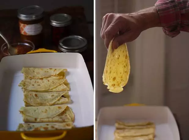 用新鲜融化的奶酪作为填充物的玉米煎饼。