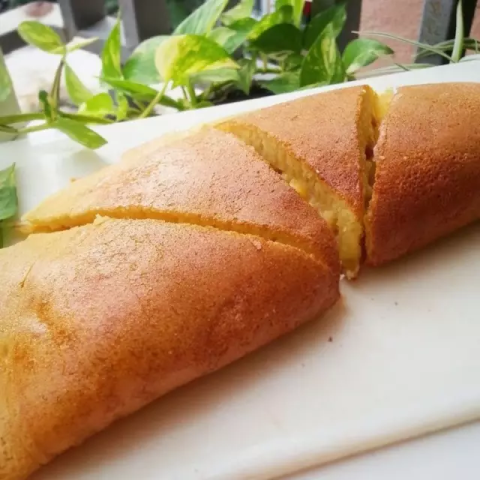 在长形或圆行锅里烘烤,成金色、蓬松完美状。然后把它切成一片片博饼,上面加上糖粉、奶油、水果和其他甜的配料。