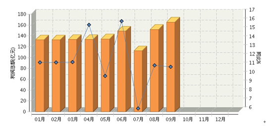 图1-9 2015年1~9月食品行业月度利润及同比