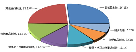 图 2015年1~9月全国食品行业累计亏损额子行业占比情况