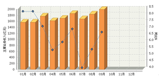 2015年1~9月,全国食品行业累计完成主营业务收入15582.35亿元,同比增长6.51%。其中:1月份完成1566.67亿元,同比增长8.35%;2月份完成1566.67亿元,增长8.35%;3月份完成1768.81亿元,增长7.23%;4月份完成1617.89亿元,增长5.47%;5月份完成1700.34亿元,增长6.05%;6月份完成1853.17亿元,增长7.03%;7月份完成1680.24亿元,增长4.13%;8月份完成1837.63亿元,增长5.51%;9月份完成1990.9亿元,增长6.79%。