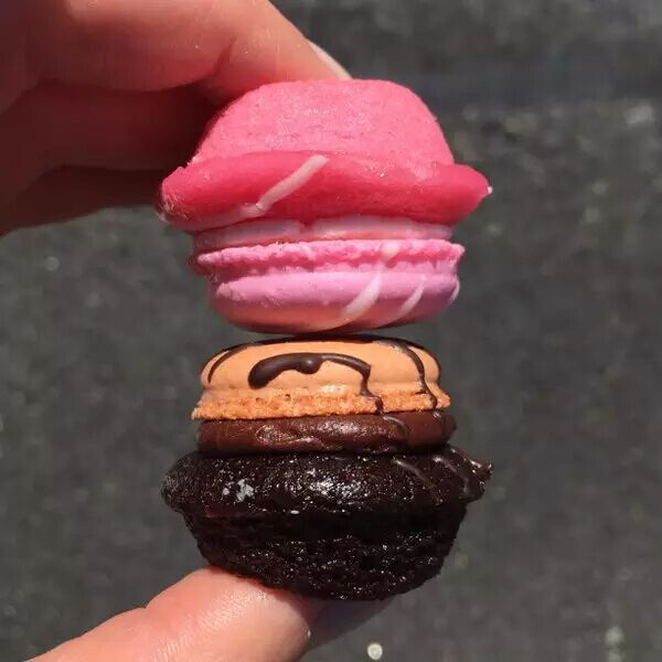 脆脆的 macaron 加上柔软鬆化的 cupcake ,口感一定很丰富 !! 一共有叁种味道,分别是棉花糖、士多啤梨忌廉和朱古力饼乾,你想试哪一种 ? 真希望这种可爱的美食快点来到中国呢 !
