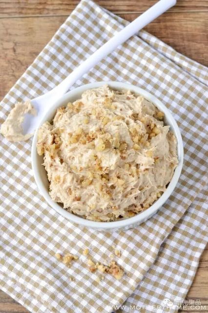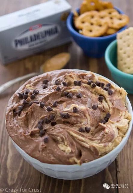 甜食爱好者的福音来了!奶酪、白糖和花生酱,用搅拌机搅拌。再加入适量的香草、巧克力和酸奶继续搅拌光滑。最后撒上一些巧克力豆或花生。