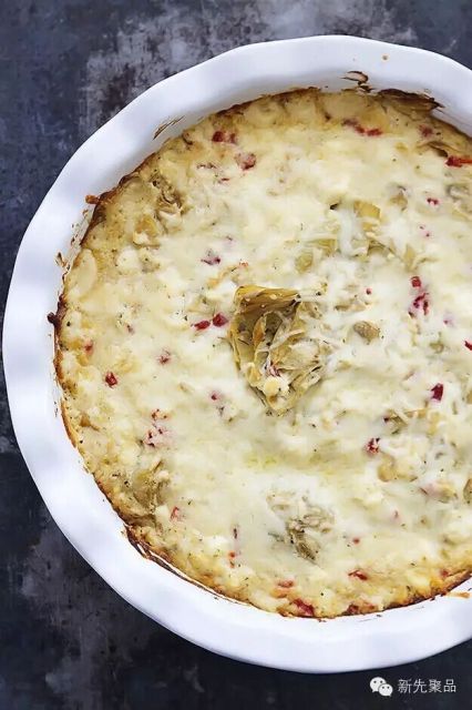 酸奶、乳酪、洋蓟心,再加入一些蒜蓉或自己喜欢的调味料,烤熟即可。