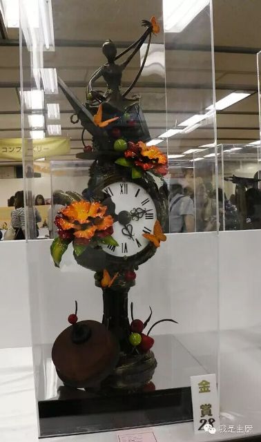 获得大会巧克力组金奖的有 2 位,一位来自宝岛台湾,另一位是日本本土,鲜花和蝴蝶环绕下的钟表和机器乌龟拿取可可的造型都让人记忆深刻。