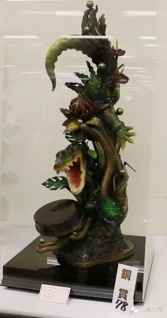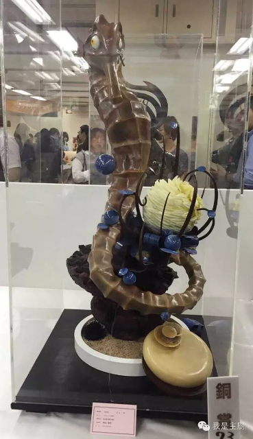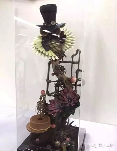 获得巧克力工艺联合会会长奖是这副作品,以猫头鹰,机械为主要造型,创意比较独到,制作手法也很到位,获得评委的好评也在情理之中了。
