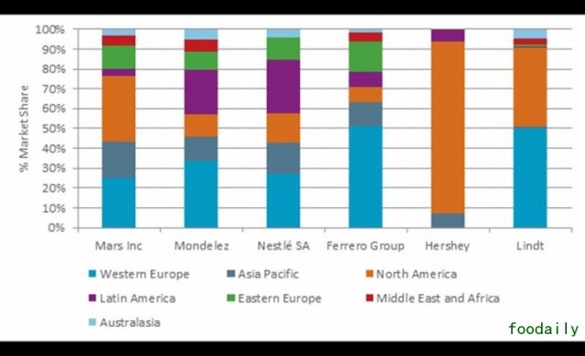 此外,在中国和印度的成功是根本没有保障的,最近好时报告了其在中国收购上海金丝猴品牌的欠佳表现。如何在亚太地区取得成功的分析需要太多的细节去深入研究。然而,不管在哪个国家,生产商都需要集中精力使其品牌在日益饱和的市场中提高辨识度。