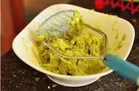 4. 挤入青柠汁,加入现磨海盐,捣成泥