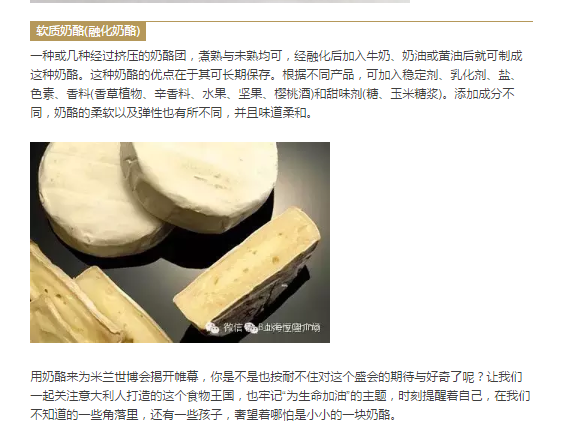 奶酪很切实的符合了这样的主题,对于奶源,制作工艺的优质要求,符合了米兰世博会对于食物清洁、环保的要求。它的物美价廉,也能为未解决食物问题尽一份力量。不妨让我们用奶酪来抛砖引玉,为这次的全球吃货狂欢小小地煽风点火吧。那么你知道这些风靡欧洲的小家伙们拥有怎么样的一个大家庭吗?不如来简单地归个类,寻找你最爱的那一块吧!