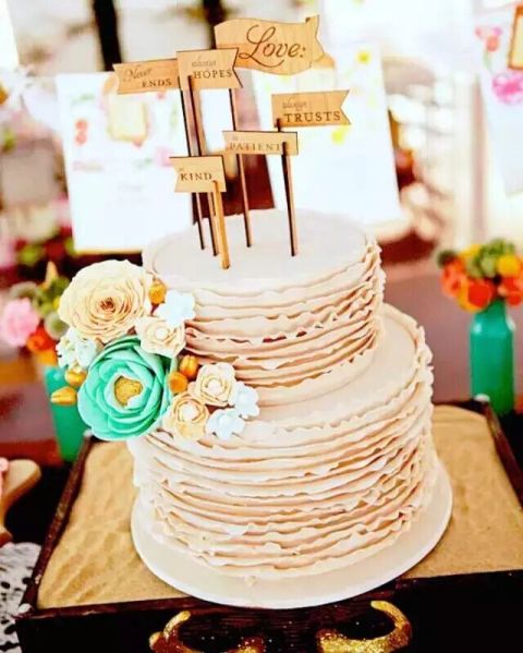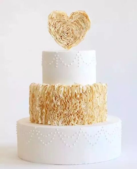 婚礼蛋糕品种多样:中式、西式、翻糖、架子、加厚...种类繁多,如果你正为婚礼筹备而烦恼,是不是想选择一款既新颖诱人又甜蜜浪漫的婚礼蛋糕吗?今天小编整理了荷叶边造型创意蛋糕,清新脱俗的格调搭配隆重高雅的婚礼氛围,是最合适不过的啦!