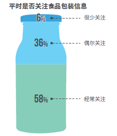 近六成消费者表示经常会关注食品包装信息;生产日期 / 保质期是消费者最关注的包装信息;同时,消费者对配料 / 营养成分表与绿色 / 有机产品标识亦较关注;对于食品成分信息,消费者对人工添加剂与是否转基因给予很高关注;