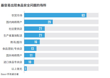 消费者对于农贸市场食品安全严重缺乏信任,而认为国外进口渠道食品安全性最能得到保证;