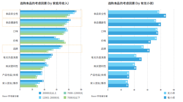 食品安全问题对品牌与行业发展有至关重要影响,而这种影响正在提升;食品安全问题发生后,消费者购买习惯也随之发生变化,主要包括选择更加安全购买渠道、选择有机 / 绿色食品、寻找替代品、多花钱购买高质食品等;家庭收入越高,消费者的购买习惯变化越明显;