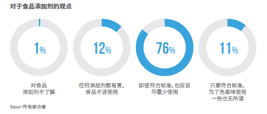 近九成消费者对食品添加剂持否定态度;整体上,近四分之一被访者表示会接受完全没添加剂但价格较高的食品;近五成被访者表示可以接受价格较高但完全无农药残留的蔬果;