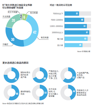 而近半数被访者认为绝大多数进口食品安全性可以得到保证;家庭收入越高,对其安全性越认可;对于绿色 / 有机食品,消费者能够接受一定程度的价格增长;而真假难辨是消费者不考虑绿色 / 有机食品的最主要原因。