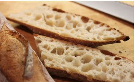 6. 观察蜂窝结构:好的baguette的内部结构应该是蜂窝状的,有中型大小的气泡,是这些气泡成就了面包的口感。如果气泡太小,材质过于密集,面包就很干,这种面包是类似于italian bread,应该吃热的;如果气泡太大,那么就很难成型,类似于ciabatta。baguette是兼顾型和口感的,所以气泡一定要适中。