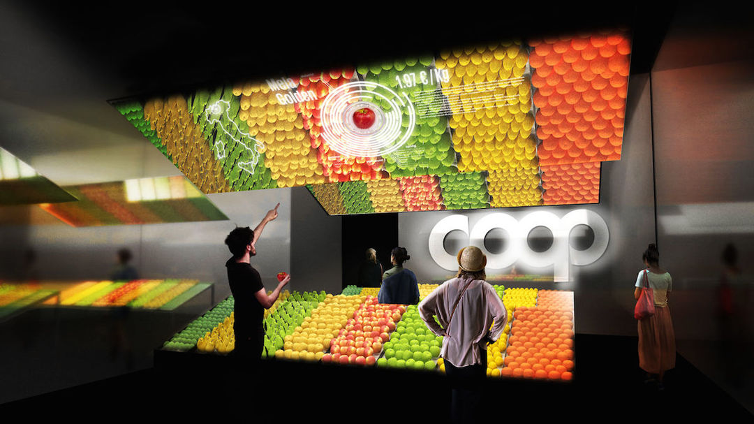 世博会里面还有若干个食品相关的专门区: 最超前的是未来食品区(Future Food District),其中浓缩了食品产业链中每一个环节的新科技。这是麻省理工学院教授城市官能实验室(SENSEable City Lab)的领头人 Carlo Ratti 负责的项目,其中的超市部分是他和一家意大利超市品牌合作,消费者如果把手接近商品,旁边的展示屏幕就会亮起,显示产品的原产地、营养成分、碳足迹(carbon footprint)等信息。这个项目的灵感来自他们的意大利老乡卡尔维诺的作品《帕诺马尔先生》,书中人物置身于超级市场的时候感觉自己仿佛身在卢浮宫,每一件产品好像都在诉说着它们的经验。