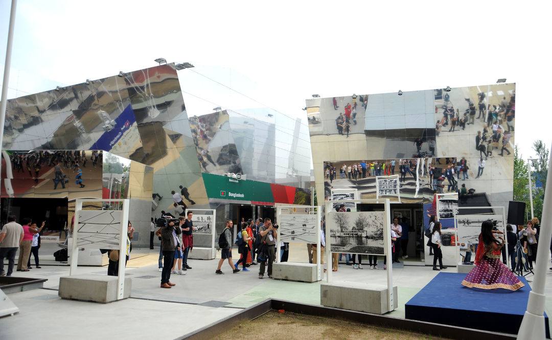 全世博会还分布着 18 个联合国的装置作品,都有巨大的蓝色汤匙作为标志。他们这次的主题是零饥饿挑战项目(Zero Hunger Challenge),强调了关于提升食物生产效率、增加小型农户收入等内容。